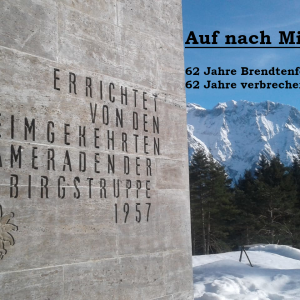 Doch dieses Jahr regt sich wieder antifaschistischer Protest gegen das Traditionsgedenken auf dem Hohen Brendten in Mittenwald. Im Mobi-Vortrag „Auf nach Mittenwald! 62 Jahre Brendtenfeier – 62 Jahre verbrecherische Tradition!“ soll neben einem Überblick zu rechten Gedenkorten in Oberbayern im Allgemeinen insbesondere auf die Gebirgstruppe der Wehrmacht, ihre Geschichte, ihre Verbrechen und ihre Tradition eingegangen werden.
